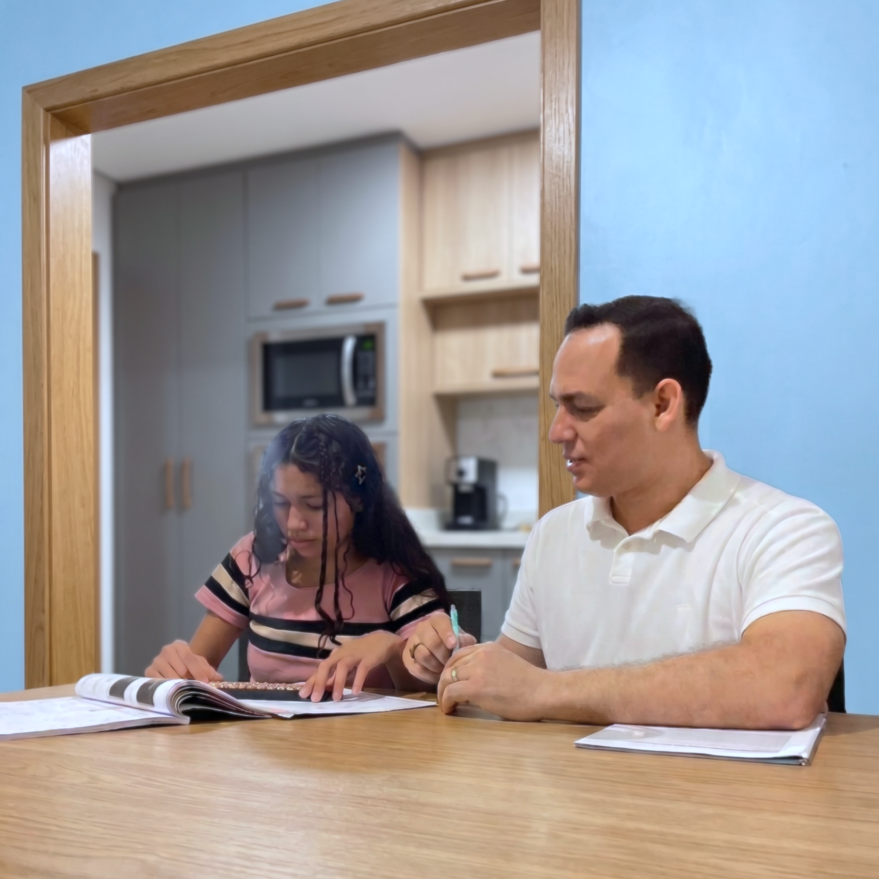 — Mãe do João, 9º ano“O diferencial é vir em casa. Facilitou muito nossa rotina em Manaus. A didática é moderna e ele se conecta muito bem com os adolescentes.”
